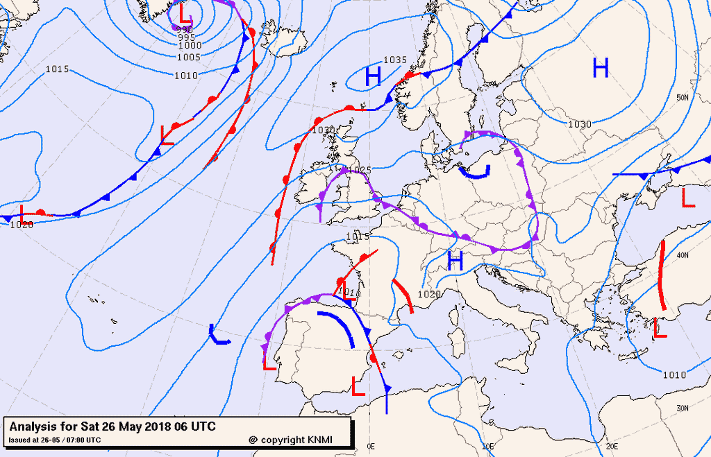 Un promontorio di alta pressione in risalita dal mar Mediterraneo porta clima stabile e piuttosto caldo su buona parte dell'Italia, mentre sull'Europa occidentale persiste da giorni una circolazione depressionaria più fresca e instabile.