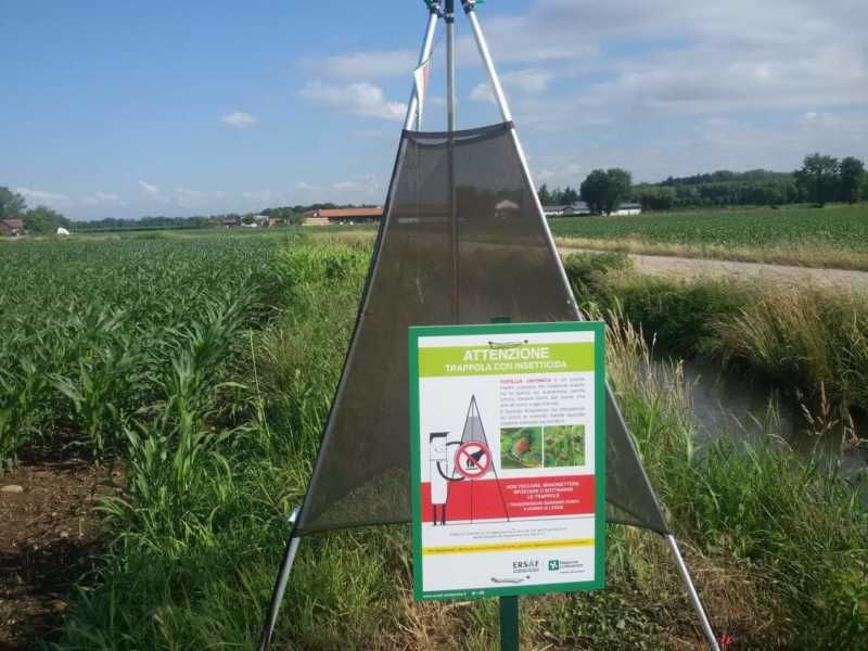 “Quest’anno la strategia di controllo – ha detto Fabio Rolfi, assessore regionale lombardo all’Agricoltura, Alimentazione e Sistemi verdi – prevede anche l’utilizzo di un nuovo tipo di trappola. Si tratta di una struttura formata da un treppiede ricoperto da una rete. Gli insetti vengono attirati verso la trappola dall’attrattivo posizionato al centro del treppiedi e vengono intercettati dalla rete. Il contatto degli adulti di Popillia japonica con la rete consente l’assorbimento di minime quantità di insetticida di cui è intrisa. La perdita di vitalità non è immediata, ma consente all’insetto di volare e muoversi ancora per qualche minuto”.