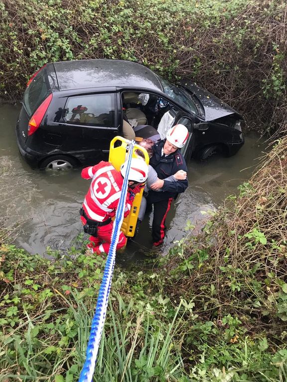 ltri utenti della strada, impossibilitati a soccorrere la donna a causa della profondità del canale anche pieno di acqua, hanno allertato il 112. Sul luogo del sinistro è giunto il personale sanitario e una pattuglia carabinieri della Stazione di Lardirago. Uno dei Carabinieri si è calato nel canale unitamente a volontario del 118, assicurandosi prima con una fune.
