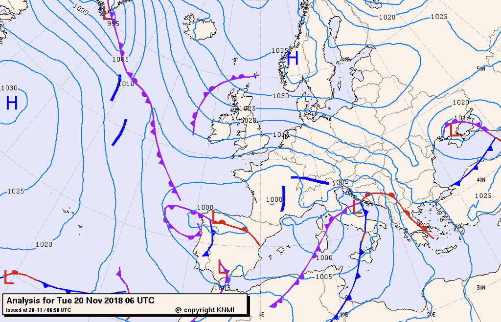Un'area di bassa pressione interessa gran parte dell'Europa centro-meridionale mentre un anomalo campo di alta pressione interessa la parte settentrionale del continente. Nelle prossime ore la depressione andrà traslando verso ovest allontanandosi momentaneamente dalla nostra regione; tuttavia i modelli matematici ne prospettano il ritorno entro questo fine settimana con un peggioramento del tempo più significativo ma che attende comunque ancora delle conferme.