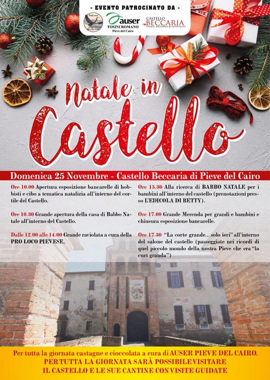 Iniziano i mercatini natalizi, domenica 25 novembre due appuntamenti da non perdere: A Breme con il "Natale in Abbazia" e a Pieve del Cairo con il "Natale in Castello" presso il Castello Beccaria. A Sannazzaro de' Burgondi, 9° mercatino di Natale e intrattenimento in piazza.