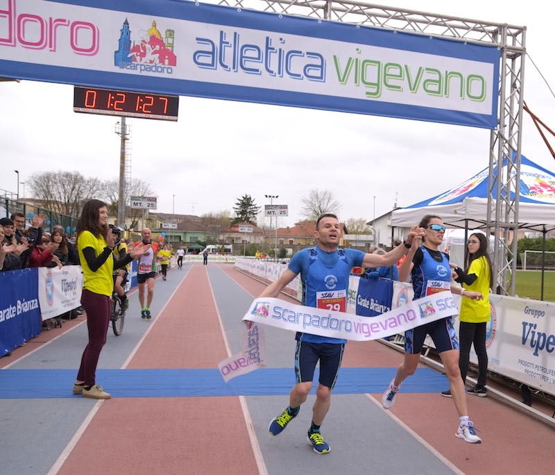 Alle sue spalle il ventitreene vigevanese, Luca Ferro, che veste i colori dell’Atletica Cento Torri di Pavia, all’esordio sulla distanza. Ha chiuso in 1h13’00”. Un risultato più che promettente per un mezzofondista veloce come lui. Aveva solo corso una 15 km due settimane fa. Grazie alla sua superiore velocità nel finale è riuscito a tenere a bada il triatleta Simone Ferrario, 1h13’05”.
