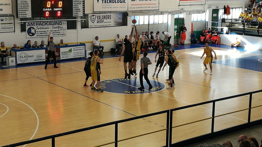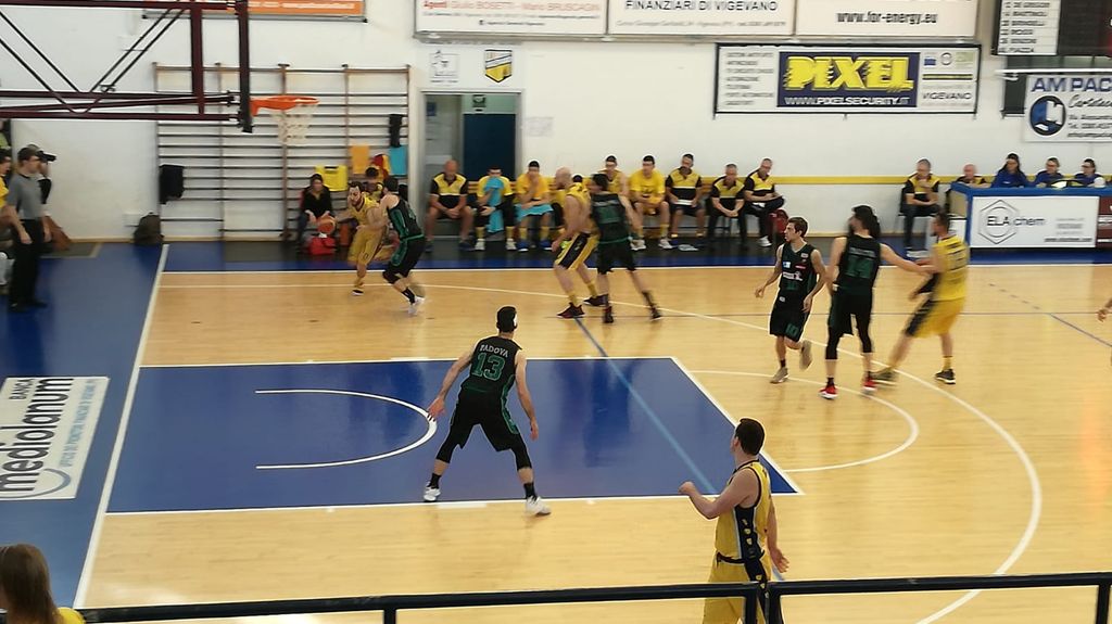 Alcune situazioni di nervosismo in campo nelle prime azioni del secondo tempo mettono in partita il pubblico del PalaBasletta, che si fa sentire. La squadra ne prende energia e torna avanti giocando con grande intensità. Grande intensità sì, ma anche tanta confusione, c’è frenesia e si spreca molto. Al 15’ squadre divise ancora da soli 3 punti (54-51). Benzoni comincia ad accendersi e mette una tripla fuori dai giochi che vale il +6. Padova fatica a trovare soluzioni offensive: sul tiro da tre la palla non entra, e senza Filippini (in panchina a tirare il fiato) mancano chili ed esperienza in area. Vigevano manca, in più occasioni, il canestro della doppia cifra di vantaggio, ma trova comunque con una magia di Rossi allo scadere dei 24” il 61-52 al 29’. Una tripla da distanza siderale di Schiavolin gira sul ferro ed esce, dall’altra parte Vecerina subisce fallo e realizza i due tiri liberi: alla fine del quarto per la Elachem è +11 (63-52).
