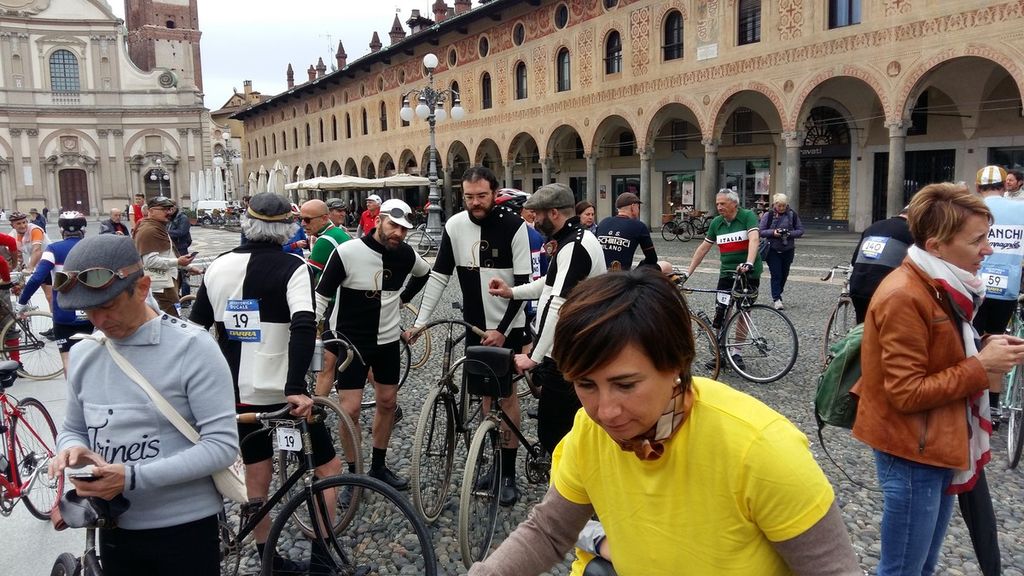 Dalle 8 in avanti ben 300 ciclisti e appassionati provenienti da tutta la Lombardia e l'Italia si sono ritrovati in Piazza Ducale per la partenza dell'esibizione programmata alle 10. Dopo la caratteristica cerimonia della punzonatura i ciclisti si sono mossi lungo il percorso preparato per le strade e le campagne della provincia pavese.