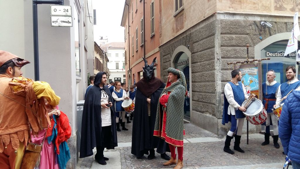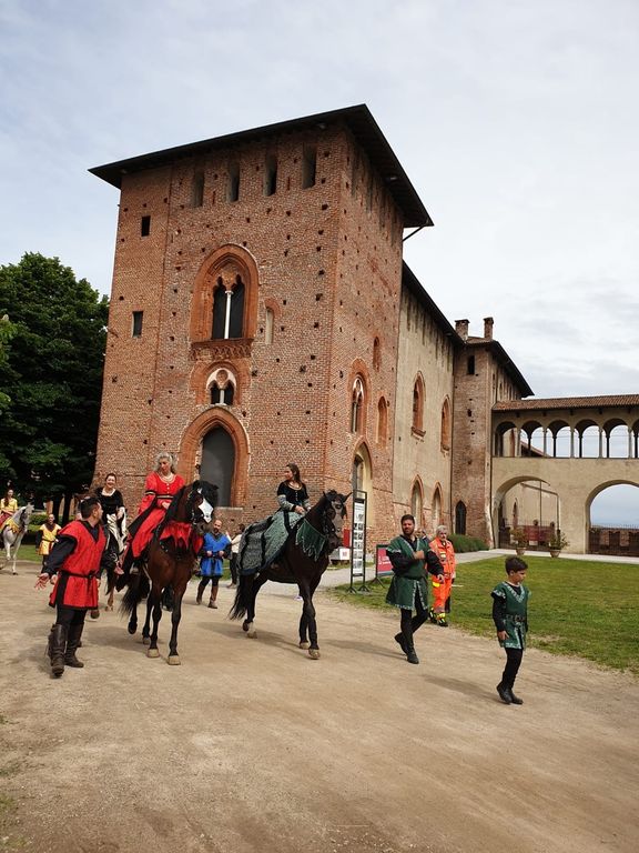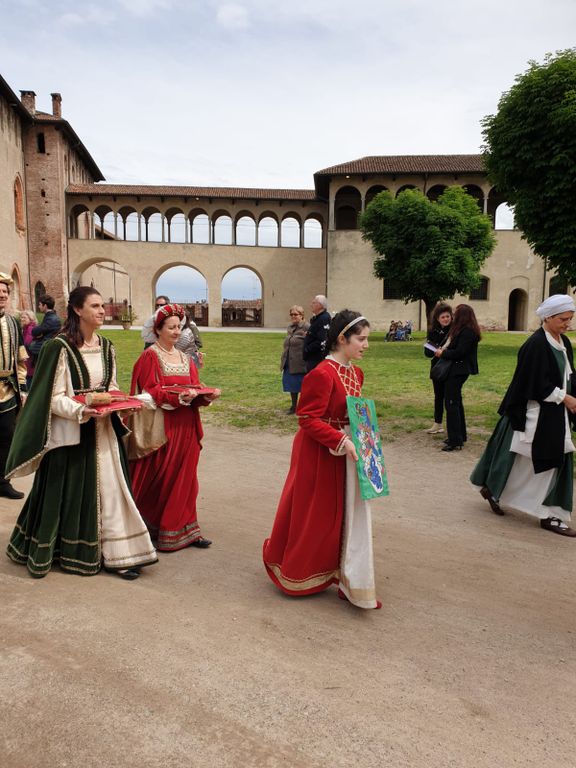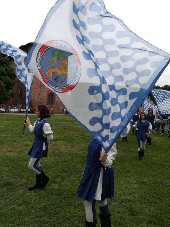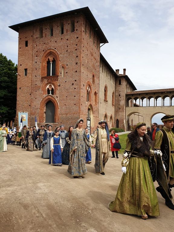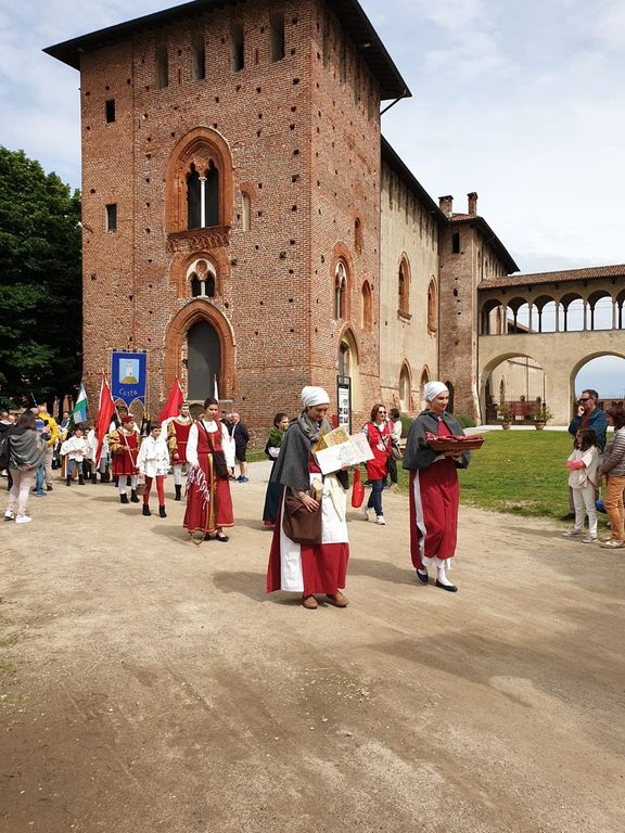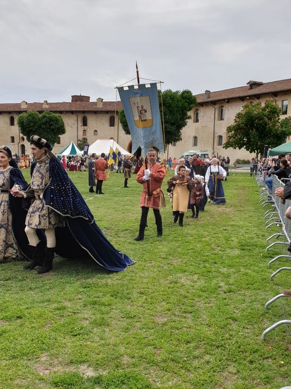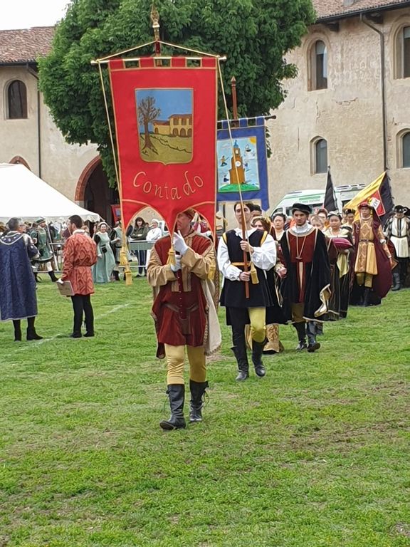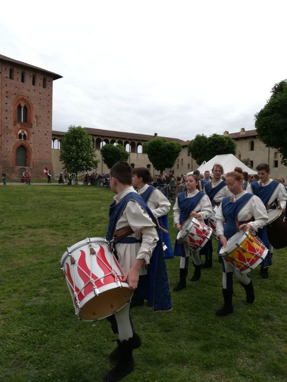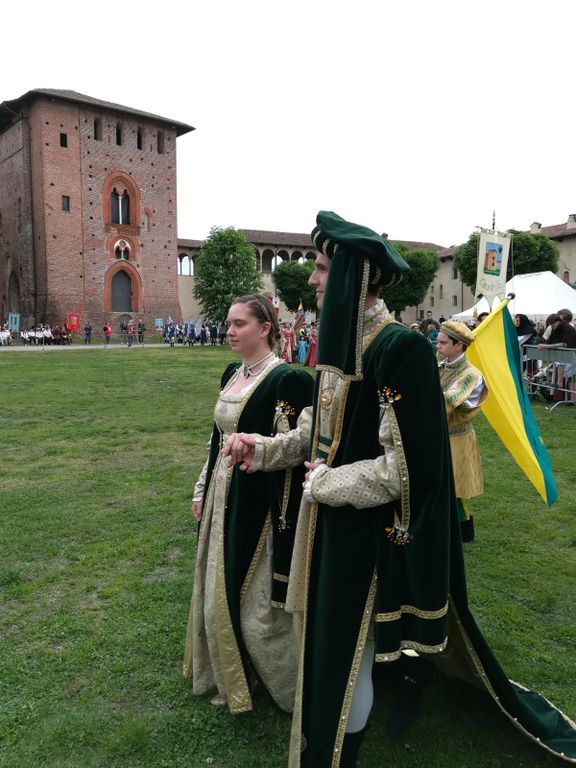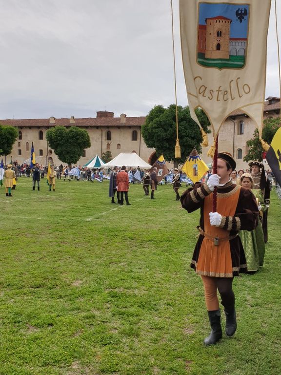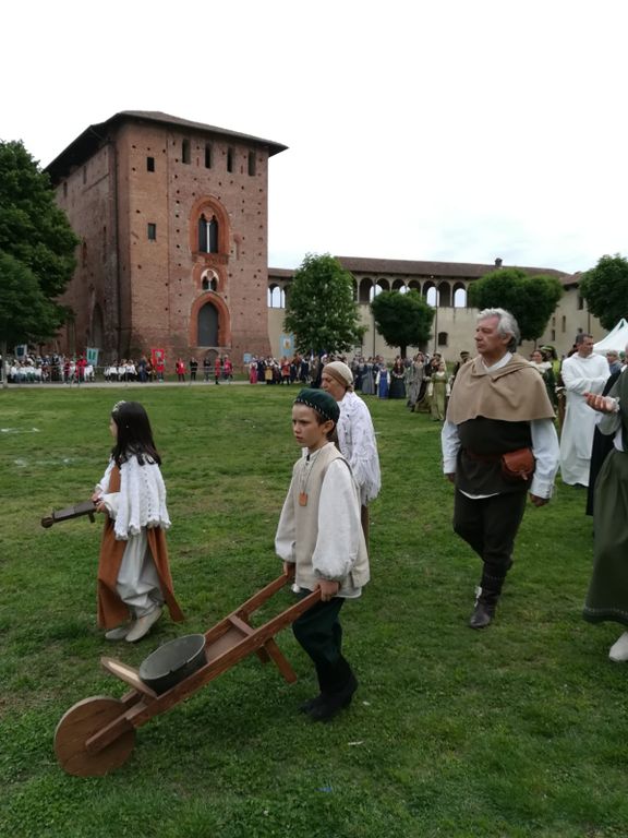 Dopo la Santa Messa al campo la ghiotta pausa pranzo ha visto turisti e vigevanesi assaggiare le pietanze preparate dalla varie contrade nelle scuderie del Castello. La sfilata delle 12 contrade, guidata da Contado vincitrice della scorsa edizione a maggio, si è poi mossa per le vie del centro storico di Vigevano. Dopo il rientro in Castello e lo spazio dedicato ai cavalli e alle esibizioni è stata la volta di aprire ufficialmente i giochi.