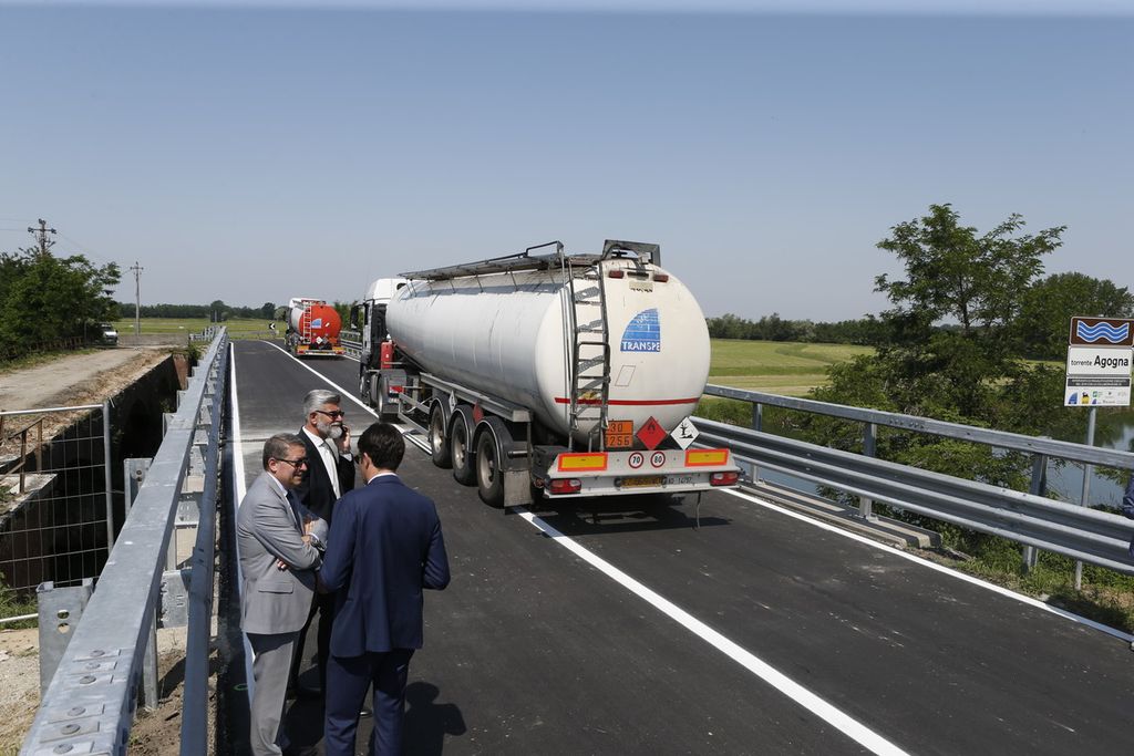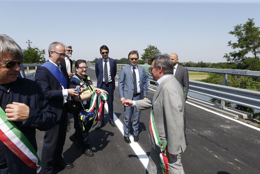 Presenti al taglio del nastro il presidente della provincia di Pavia Vittorio Poma, e i sindaci di Ferrera Erbognone, Mezzana Bigli e Sannazzaro de' Burgondi, oltre al responsabile della ditta appaltatrice dei lavori e i dirigente delle aziende che hanno finanziato la riqualificazione del manufatto.