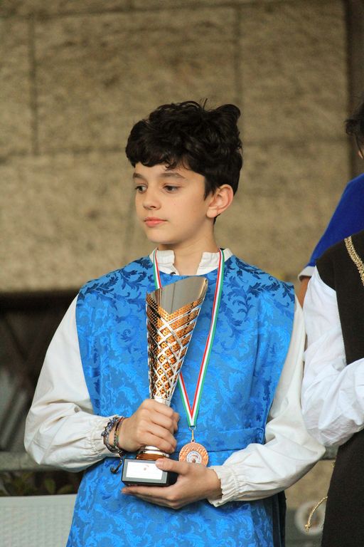 Il gruppo vigevanese ha ottenuto un ottimo bronzo nel Singolo U12 con Nicolò Pirovano. Il giovane sbandieratore ducale si è ripetuto insieme al collega Nicolò Aprile meritandosi un fantastico oro nella Coppia U12. La terza medaglia conquistata dai giovani sbandieratori dell’Onda Sforzesca è l’argento ottenuto con la Piccola Squadra U12 composta da Nicolò Pirovano, Nicolò Aprile, Luca Corsari e Luca Vitone.