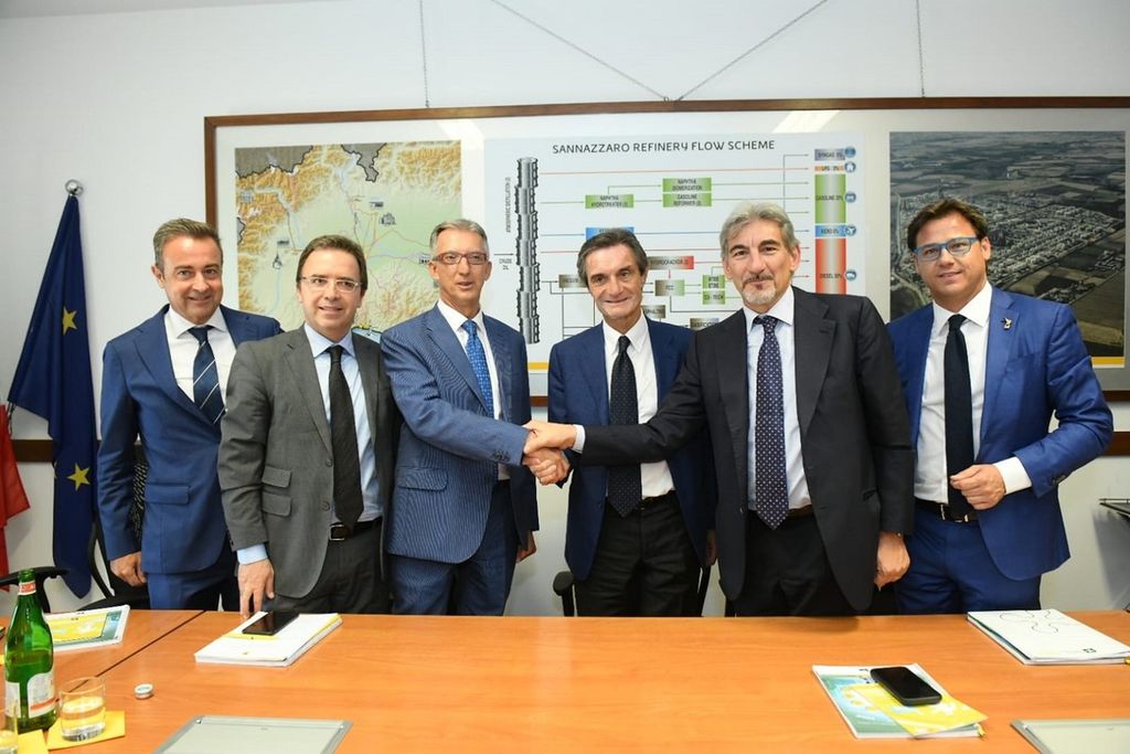 Il presidente della Regione Lombardia, Attilio Fontana, e il chief refining & marketing officer di Eni, Giuseppe Ricci, hanno sottoscritto un Protocollo d'Intesa che mira ad elaborare iniziative congiunte per promuovere una politica industriale di tipo circolare e a basse emissioni di carbonio, come risposta economica, sociale e culturale allo spreco di risorse che determina diseguaglianze, impatti ambientali e inefficienze nel territorio. All'incontro era presente anche l'assessore regionale all'Ambiente e Clima, Raffaele Cattaneo.