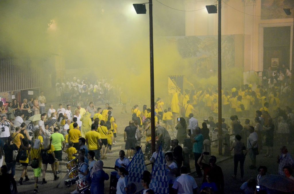 Dalle 21.30 il sagrato della Chiesa ha visto cominciare le sfide e i giochi per la disputa vera e propria del 46° Palio delle Contrade. Dopo una serie di bizzarre e divertenti gare a spuntarla è stata la contrada bianco-verde di San Giorgio, che ha gioito insieme al numeroso pubblico presente.
