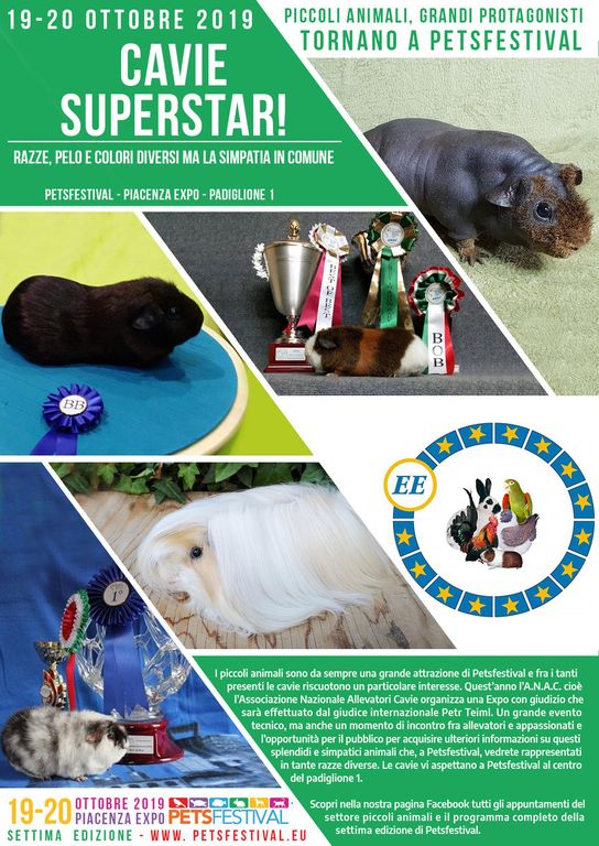 Cavie peruviane super star! La settima edizione di Petsfestival ha l’onore di ospitare una Esposizione di cavie peruviane con tanto di giudice che ci dirà quali sono gli esemplari più belli.