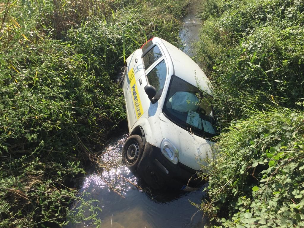 Un uomo 36enne si trovava al volante di un auto delle Poste italiane, quando improvvisamente ha perso il controllo del mezzo ed è finito appoggiato su una fiancata; all'interno di un fossato lungo la strada provinciale 206, poco dopo il centro abitato di Scaldasole in direzione Dorno. Fortunatamente per il portalettere, nonostante nel piccolo canale irriguo ci fosse ancora presente dell'acqua, le conseguenze sono state meno serie di quanto lasciasse presupporre la dinamica iniziale.