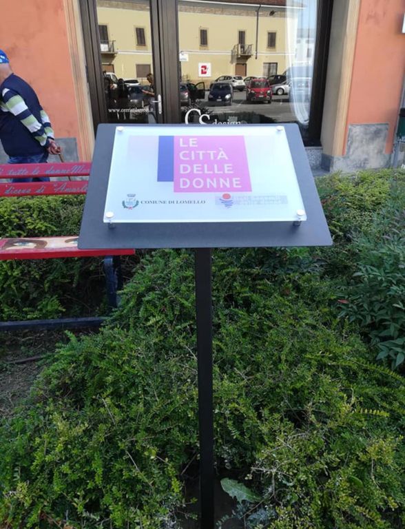 Oltre alla piccola targa “Le città delle donne”, la signora Magenta ha dato incarico di eseguire un cartello, con la stessa scritta ma di dimensioni ben più grandi, da regalare poi al Comune, in modo che lo posizioni nella bacheca all’ingresso del Municipio.