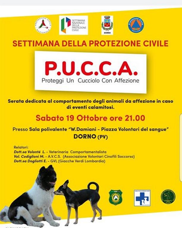Il titolo della serata di approfondimento è "Pucca" sigla di "Proteggi un cucciolo con affezione". “Parliamo in sintesi – spiega il responsabile del gruppo dornese di protezione civile Carlo Cuzzoni - dell'unico approfondimento su questo tema in tutta la Regione Lombardia”.
