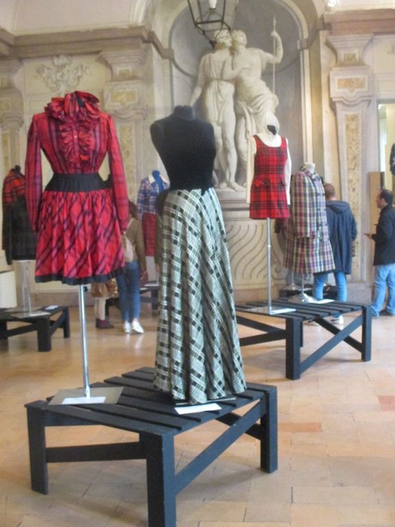 Fra gli eventi collaterali della fiera c’era Tartan, una mostra dedicata alla storia del tessuto a scacchi che nasce dall’incrocio di fili di colori diversi che si ripetono nel cosiddetto sett, uno schema definito uguale nella trama e nell’ordito, nascono linee e quadrati con effetti cromatici diversi che raccontano storie.