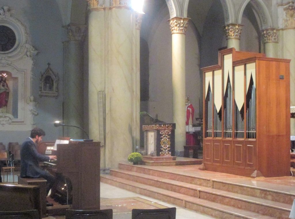 Due le particolarità, Emanuele ha suonato un organo da lui stesso costruito e inaugurato nel 2017, il suo “volta pagine”, figura che prevedere un’ottima conoscenza della musica, è stato l’ing. Mario Vinci, lo zio, il primo che forse lo ha avviato verso la musica, intuendone le potenzialità.