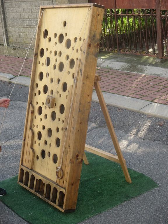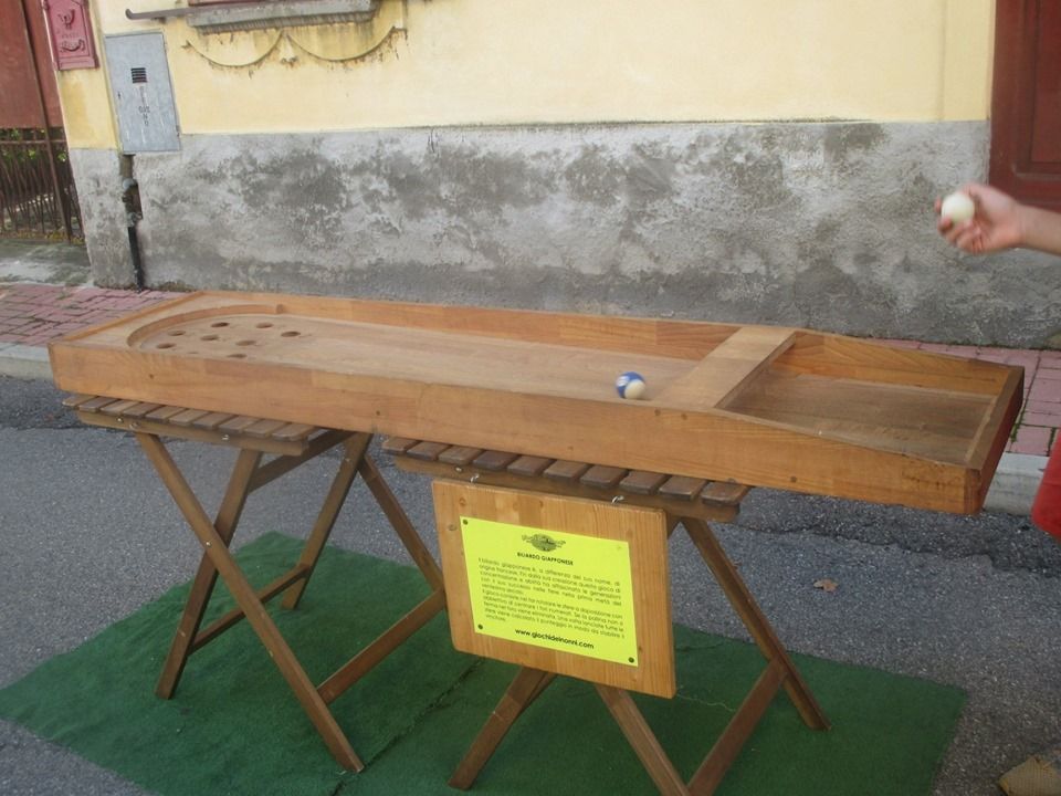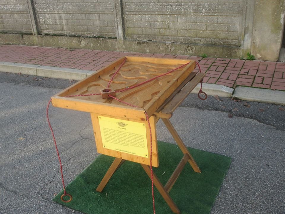 Accanto un angolo con i giochi dei nonni, i semplici divertimenti di un tempo, fatti di semplici elementi che hanno accompagnato tanti bambini nel diventare grandi.