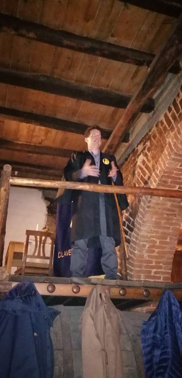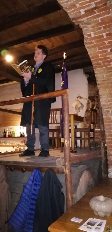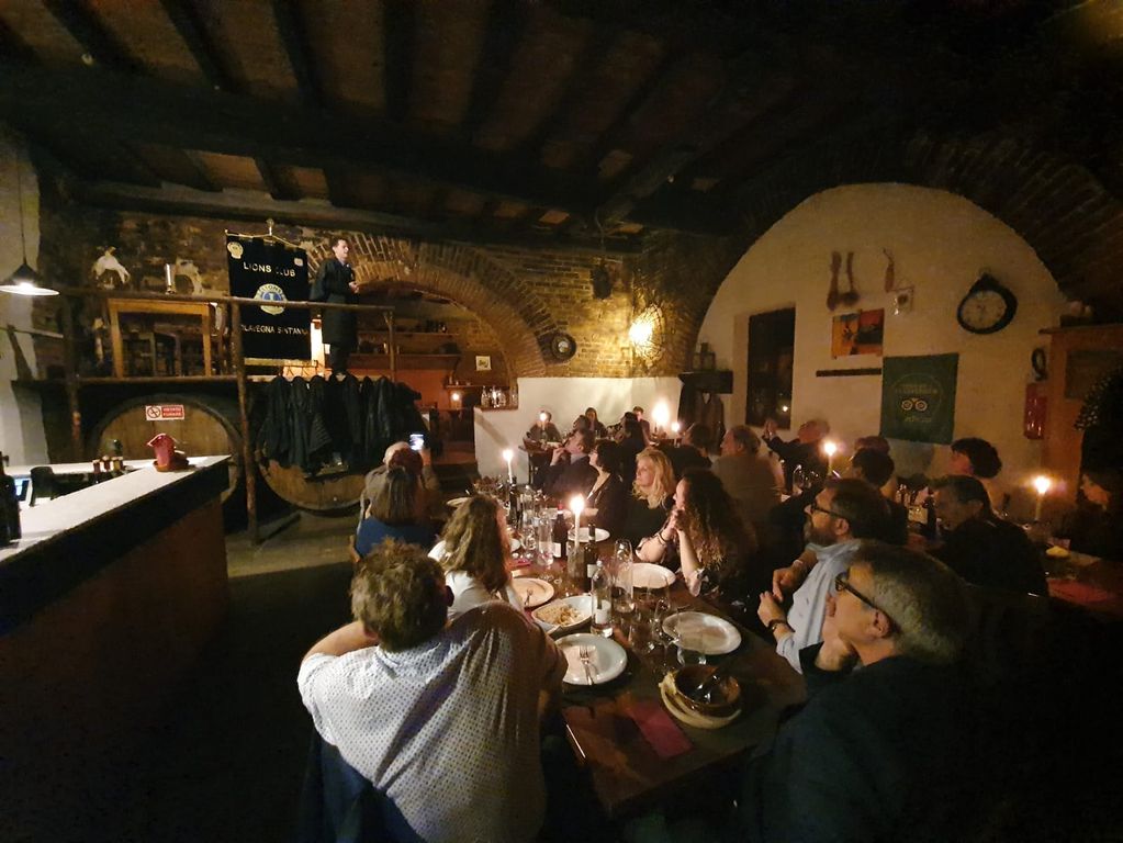 Fowler tra una portata e l'altra ha intrattenuto il pubblico del Lions Club spiegando anche le attività dell'Associazione culturale "Il mondo di Tels", per cui lavora e che crea e cura nel dettaglio tour narrati del circuito "The Original History Walks". In particolare il progetto dell'Associazione iniziato nel 2010 da Pavia è arrivato ad abbracciare ora ben 19 città italiane.