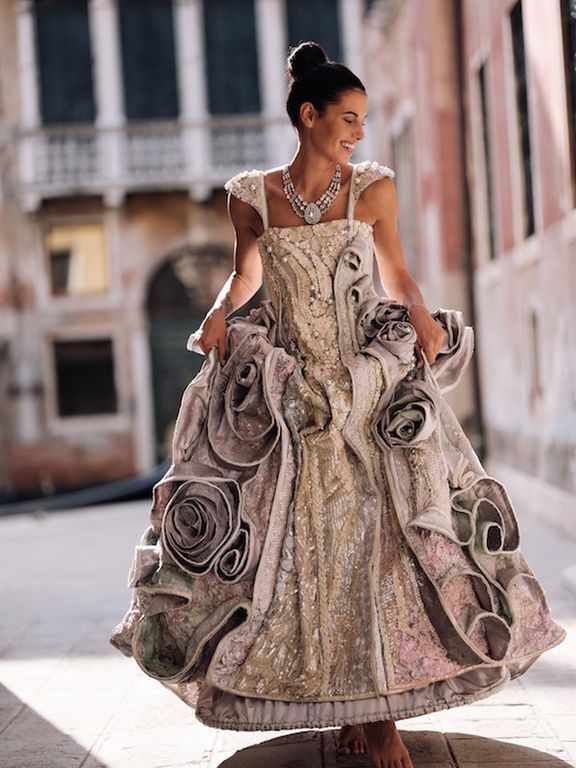 Qui la “mise” è glamour, color rosso, protagonista di un’atmosfera dal sapore d’antan. Immancabile, poi, è lo scorcio iconico della città lagunare, con gondole e gondolieri, e la miss che sfoggia per il mese del Carnevale l’“Allegoria di Venezia”, un prezioso abito scultura di Antonia Sautter.