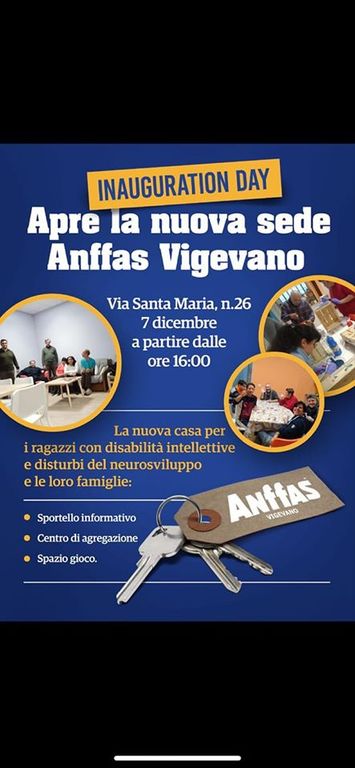 L'appuntamento è dunque alle ore 16 per festeggiare insieme e di scoprire la nuova casa di Anffas Vigevano.