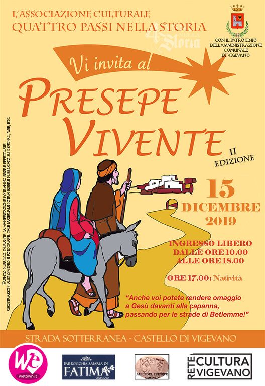 Proprio il santo evento della nascita di Gesù sarà messo in scena alle ore 17, con Giuseppe e Maria che percorreranno l'intero presepe alla ricerca di una sistemazione per la notte in una locanda, salvo poi trovare al termine del loro percorso spazio in una capanna. L'intera processione sarà accompagnata dai canti del Coro della parrocchia di Santa Maria di Fatima.