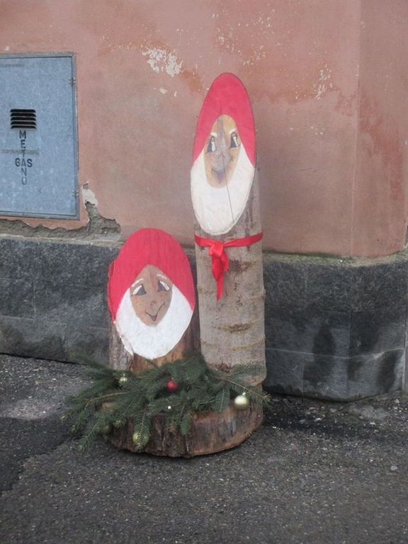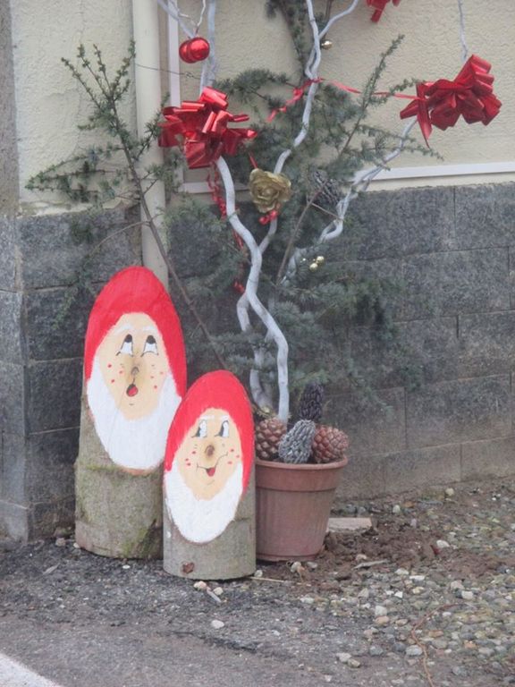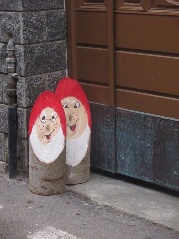 Sono ricavati da tronchi di legno, con la parte superiore trasformata nel viso di uno gnomo che sorride.