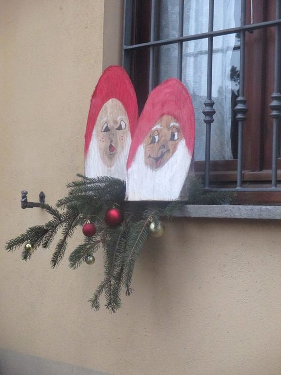 E’ un piccolo borgo, e ai lati della via principale, vicino quasi o ogni portone e anche alla Chiesa, simpatici personaggi "sorridono" ai passanti.