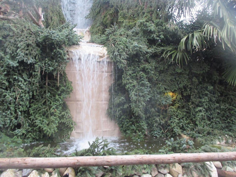 Bellissima la cascatella d’acqua che forma poi un laghetto dove anatre colorate nuotano quasi orgogliose della loro partecipazione.