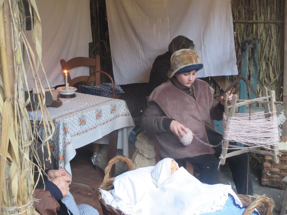 E che dire del fabbro che con l’incudine e il martello forgia il metallo, le filatrici con gli arcolai, i pastori nel loro tradizionale abbigliamento.