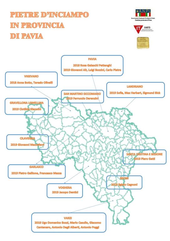 Dopo la prima pietra d’inciampo posata a Pavia piazza Petrarca nel gennaio 2018 in memoria di Rosa Gaiaschi (antifascista deportata in lager con il marito e il figlio), il progetto europeo curato dallo scultore Gunter Demnig continua in Provincia di Pavia grazie alla sinergia tra Anpi / ANED/ Istituto storico della Resistenza.