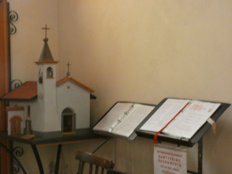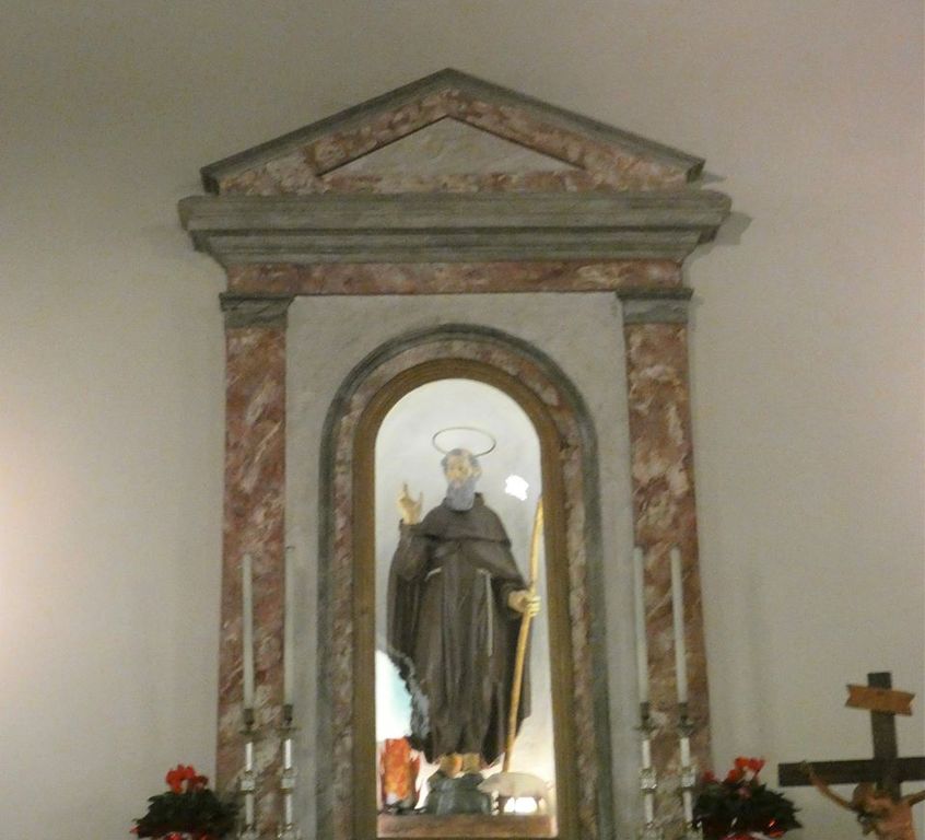 Gli addobbi della Chiesa, preparati con cura, i fiori, le candele, un segno di appartenenza oltre che di fede e di devozione. All’interno la statua del Santo, una targa a ricordo della visita Pastorale dell’arcivescovo, un modellino della chiesa stessa.