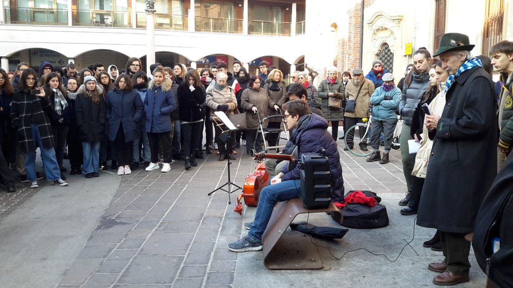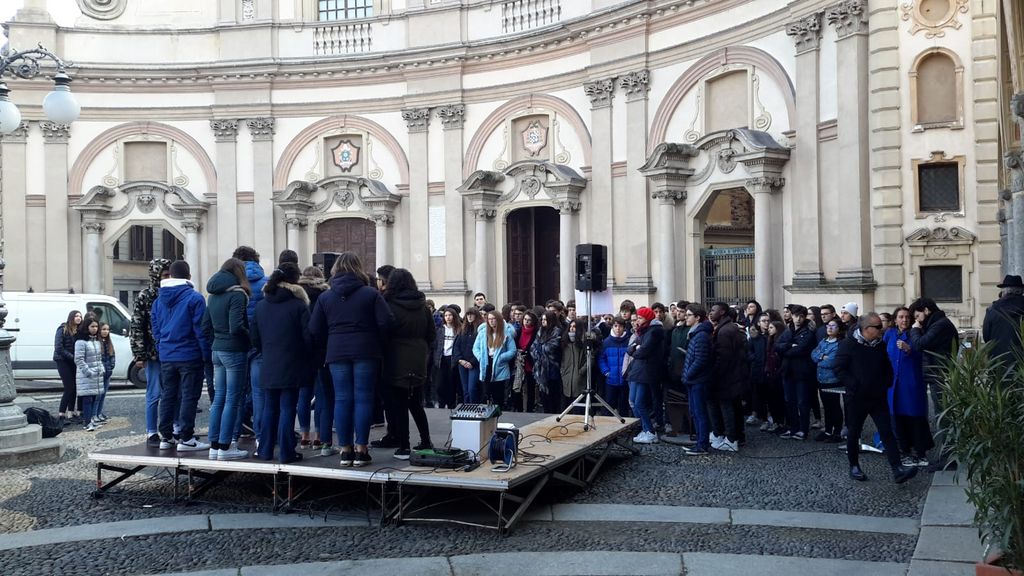 Proprio davanti alla Chiesa di San Dionigi si sono raccolti studenti e cittadini per alcune celebrazioni musicali in ricordo della tragedia della Shoah.