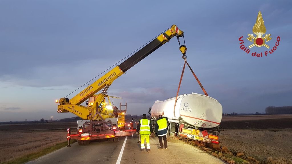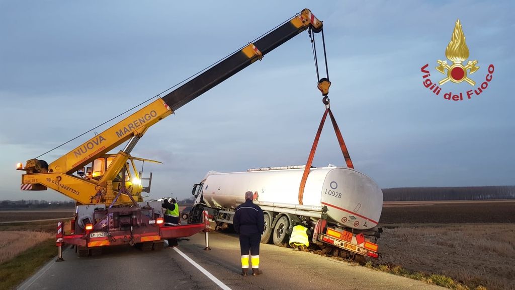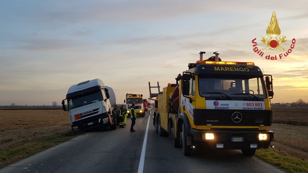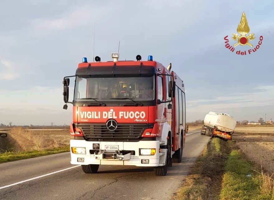 Questo pomeriggio intorno alle 15:30, la squadra dei Vigili del Fuoco Volontari di Robbio è intervenuta sulla sp 194 nel territorio di Candia Lomellina per dare assistenza a un autoarticolato che trasportava carburante,uscito parzialmente dalla sede stradale.