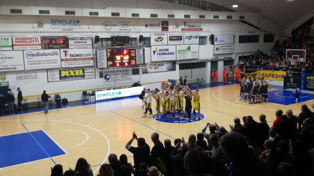 17 punti nei primi 17 minuti, 44 negli ultimi 15. Una partita che sintetizza perfettamente la discontinuità della stagione di Vigevano, che ha letteralmente acceso il PalaBasletta dopo che alla fine del primo tempo i mugugni si levavano evidenti dagli spalti per una squadra che sembrava non avere il filo. Il riscatto quando la palla ha cominciato a girare più velocemente in attacco, pescando Filippini sotto canestro e tiratori liberi dall’arco.