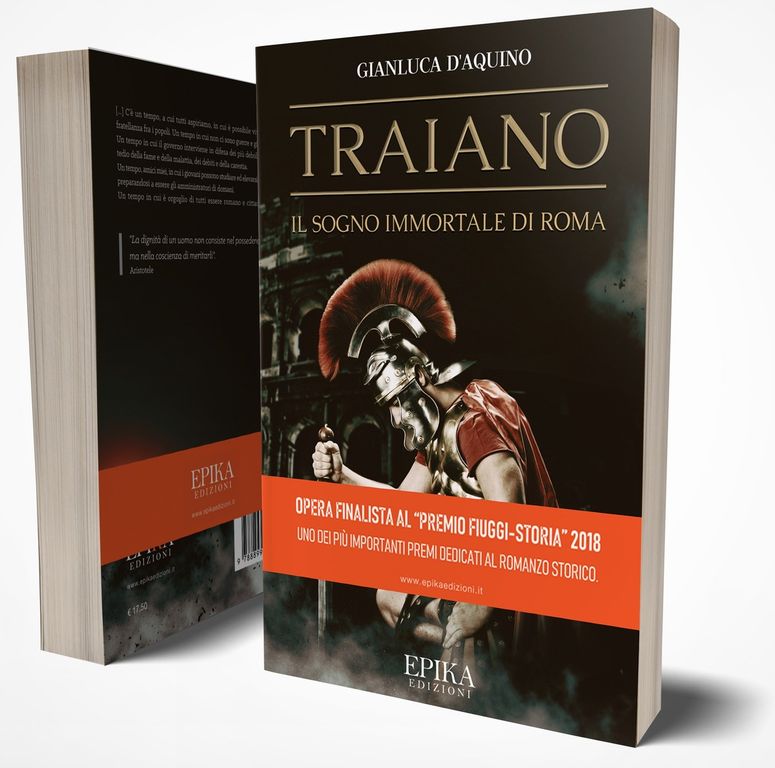 L’opera di Gianluca D’Aquino, “TRAIANO – il sogno immortale di Roma”, è una biografia romanzata che ripercorre la vita del grande imperatore romano attraverso intrighi, amori, amicizie e battaglie, rivolgendosi a ogni genere di lettore, e narra la storia di Marco Ulpio Traiano dall’infanzia ai grandi successi militari, passando dalla Germania e dalla Dacia per giungere allo scontro con i Parthi, ai confini dell’impero, là dove nessuno era mai arrivato prima e oltre i quali nessuno fu più in grado di spingersi. Traiano restituì a Roma un senso di civiltà per molto tempo perduto e la portò in quella che sarebbe stata ricordata come l’età aurea, passando per le grandi riforme in ambito civile, amministrativo, economico e militare.