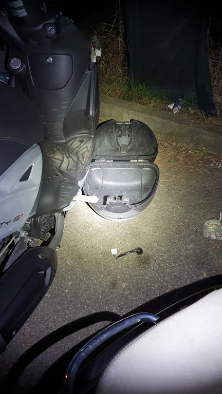 spaccare e asportare il bauletto di un motoveicolo Beverly nei pressi del parcheggio di un supermercato di via Cozzi.