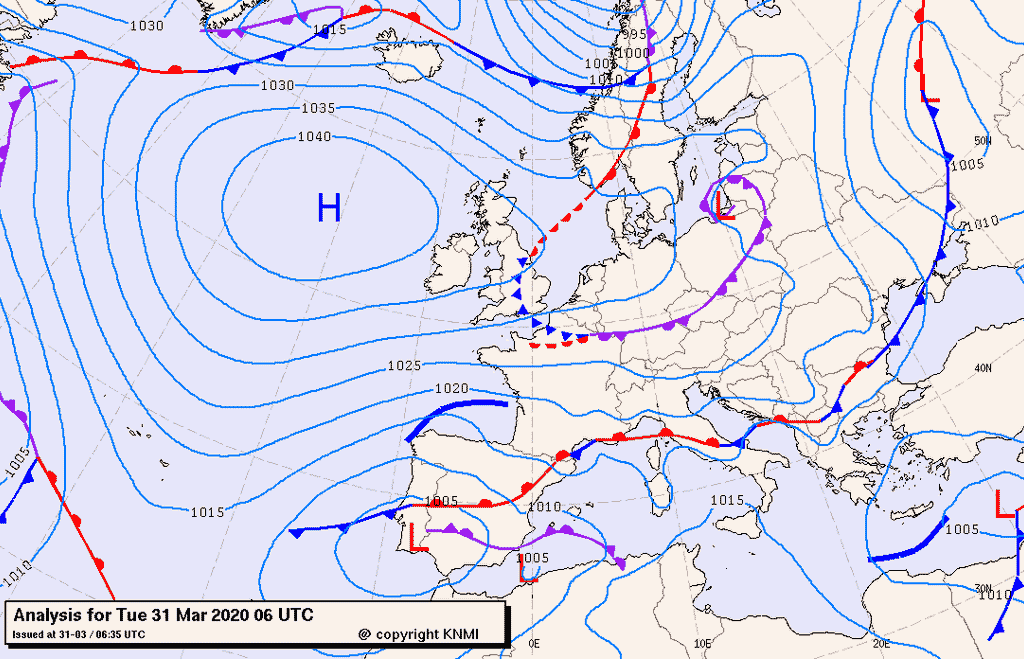 L'espansione della vasta area anticiclonica presente sull'Atlantico ad ovest dell'Irlanda, favorirà l'approfondimento della saccatura scandinava. Il bordo meridionale della saccatura si porterà sui settori di nord-est della penisola, facendo affluire sulla nostra regione aria polare. Generale calo delle temperature su tutta la regione. Miglioramento dal pomeriggio di mercoledi, accompagnato da un graduale rialzo delle temperature.
