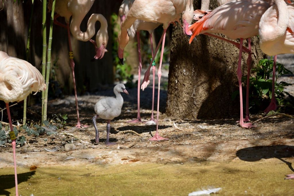 L’ultimo nato in casa “Phoenicopterus roseus”, dopo un anno dall’ultima nascita nell’area, ha superato con successo sia la fase di incubazione di circa un mese che avviene dopo la deposizione dell’uovo fino alla schiusa, sia il primo periodo di vita, fondamentale per accorgersi in tempo utile di eventuali criticità, ed è regolarmente visitato dai veterinari del Parco Faunistico Le Cornelle per monitorarne lo stato di salute. Il pulcino si presenta di un piumino grigiastro questo perché la tipica colorazione rosa è dovuta ai pigmenti rosso/arancione, chiamati carotenoidi, contenuti in gran quantità nelle alghe e nei piccoli organismi di cui si nutrono questi animali e che si manifesterà raggiunta la maturità. Nei primi mesi di vita, il fenicottero verrà nutrito con il latte del gozzo dell’adulto, per poi passare – come tutti gli altri – a nutrirsi con piccoli organismi acquatici, gamberetti ed alghe. I genitori continuano a nutrire i piccoli sino a un anno di vita.