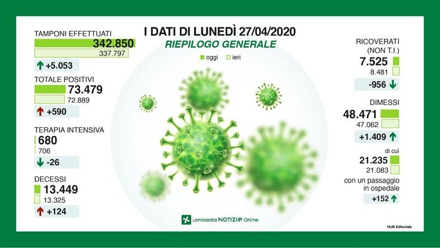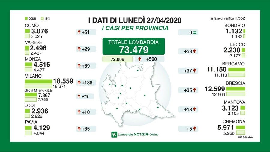 Di seguito i dati dei contagi odierni in Lombardia e quelli dei giorni precedenti:
