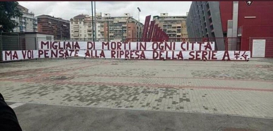 Lo hanno fatto oggi, lunedì 11 maggio, esponendo due vistosi striscioni dal contenuto inequivocabile all'esterno del Filadelfia, il campo di allenamento dei granata. Nel primo, posizionato proprio davanti al cancello d'ingresso, è stato scritto: "Migliaia di morti in ogni città ma voi pensate alla ripresa della serie A". Il tutto seguito dalla firma degli Ultras Granata, a voler dimostrare che questo è il pensiero della parte più calda della tifoseria granata e della curva Maratona.