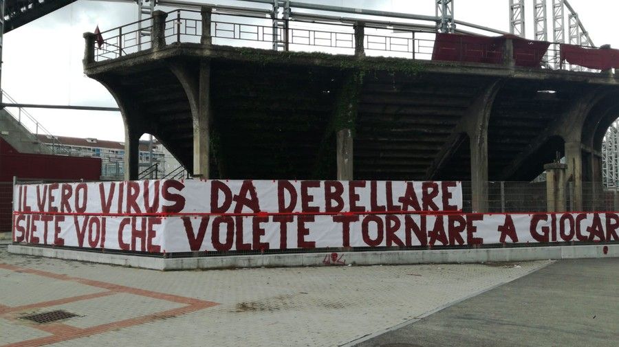 Al fianco di questo striscione, ne è stato appeso un altro, dal contenuto anche più pesante: “Il vero virus da debellare siete voi che volete tornare a giocare”. Con queste dimostrazioni così forti e palesi, i capi della tifoseria organizzata si sono schierati dalla stessa parte di quelli dell’Atalanta, che per primi si erano detti contrari alla ripartenza del campionato dopo l’epidemia sanitaria legata al Coronavirus, che neri giorni scorsi ha visto allinearsi su queste posizioni anche gli ultras di Roma e Lecce, tra i tanti.