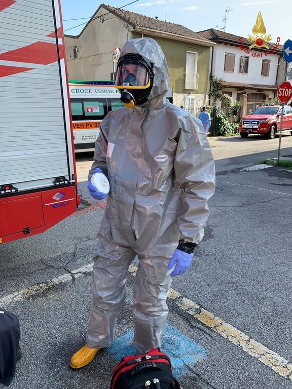 Questa mattina (mercoledì) i Vigili del fuoco di Pavia sono intervenuti a Giussago per un soccorso a persona. Una volta arrivati in posto, appreso dal 118 che la persona all’interno fosse positiva al Covid-19, il personale ha indossato con gli appositi DPI (dispositivi di protezione individuale) che si utilizzano per fronteggiare questo tipo di scenario.