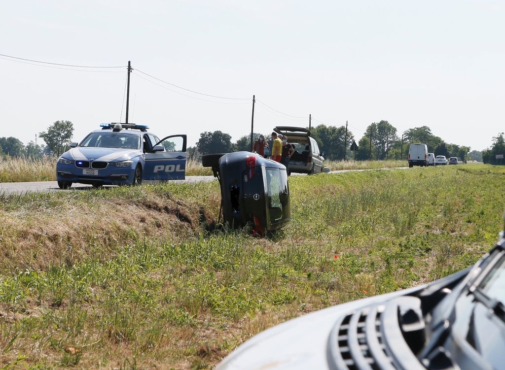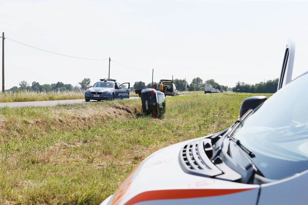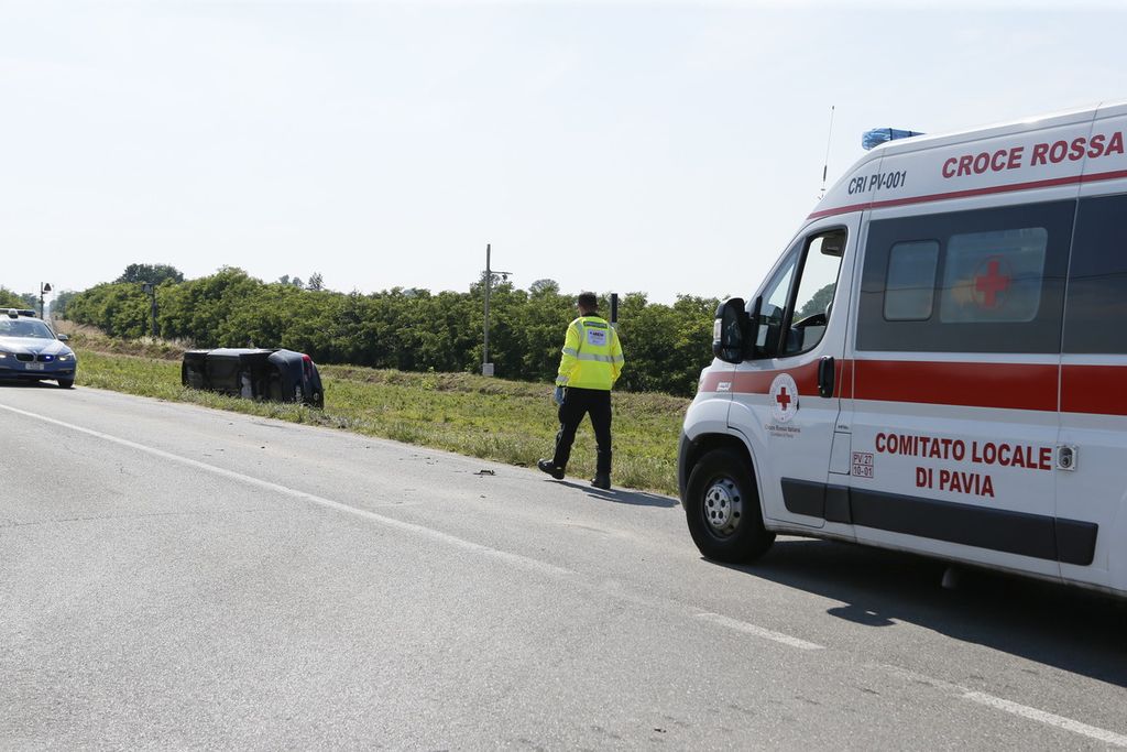 Secondo le prime ricostruzioni due auto che marciavano nella stessa direzione provenendo da Zinasco, poco prima del cavalcavia autostradale, si sono tamponate e uno dei due mezzi dalla violenza dell'urto è finito ribaltato su un lato in un campo adiacente alla carreggiata.