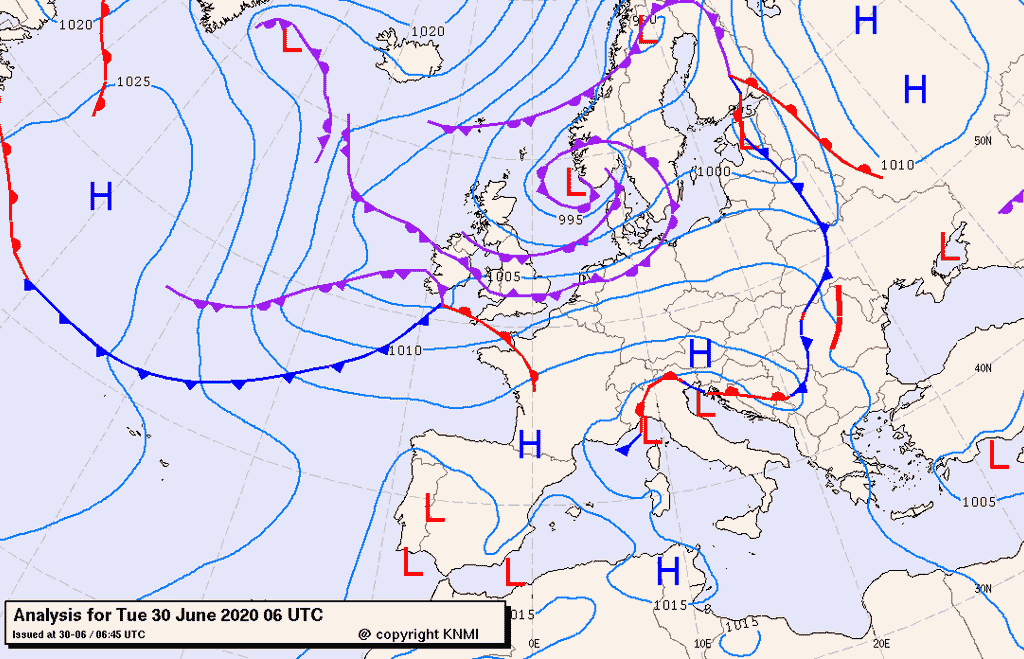 La struttura depressionaria tra Regno Unito e Scandinavia facilita la risalita del caldo anticiclone nord africano verso il Mediterraneo, dove insisterà per diversi giorni.