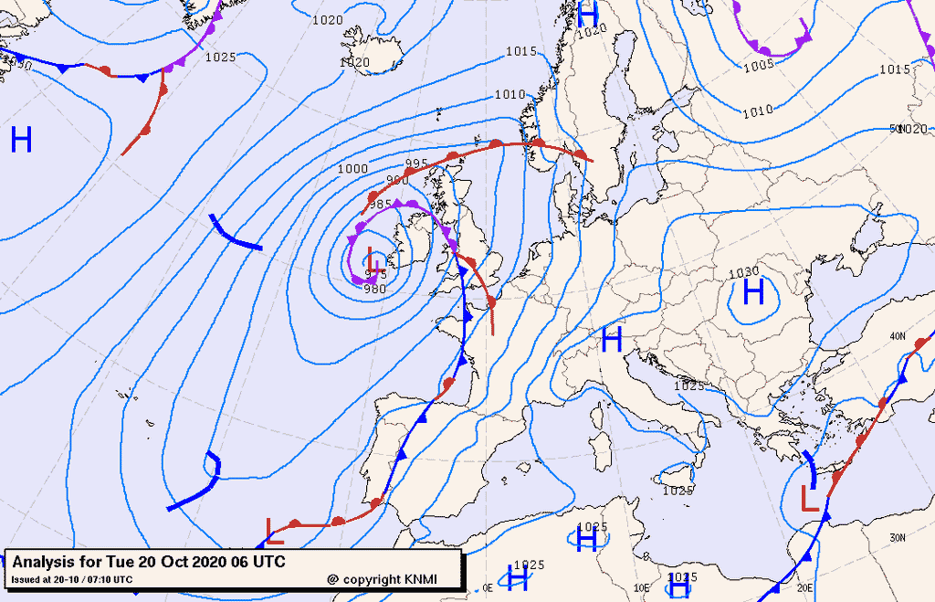 L'anticiclone centrato sull'Europa orientale ed esteso anche sull'Italia, favorisce condizioni di tempo stabile su gran parte della penisola con temperature in media con i valori climatologici di riferimento. Tuttavia l'umidità presente nei bassi strati favorisce formazioni di foschie e nebbie in pianura e nelle vallate, durante la notte e al mattino presto, specialmente al Centro-Nord, rendendo il tempo piuttosto uggioso e tipicamente autunnale.