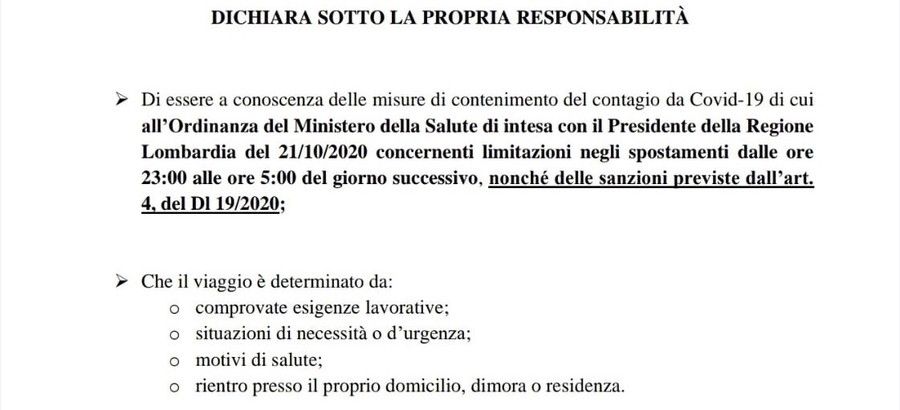 Da questa sera in tutta la Lombardia sarà vietato uscire di casa dopo le 23 e fino alle 5 del mattino successivo, come prevede la nuova ordinanza firmata nella giornata di ieri dal ministro della Salute Roberto Speranza e dal governatore lombardo Attilio Fontana.