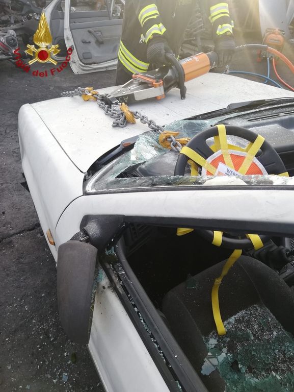 L’esercitazione si è svolta presso l‘autodemolizioni Desal di Arena Po che ha messo a disposizione dei vigili del fuoco una vettura.
