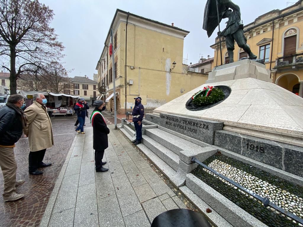 Un omaggio sobrio, alla presenza del sindaco Giorgio Guardamagna, le limitazioni imposte dalla pandemia hanno cancellato le consuete celebrazioni per la Giornata dell'Unità nazionale e delle Forze armate, ma sotto il monumento ai Caduti di piazza Repubblica è stata comunque deposta questa mattina una corona di fiori.