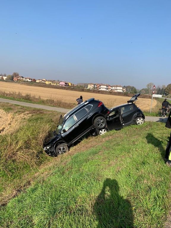 Due auto con a bordo un uomo di 43 anni e un 54anni si scontrate, un impatto piuttosto violento dal momento che i due veicoli hanno terminato la propria corsa fuori dalla sede stradale nei pressi di un campo uno sopra l'altro.