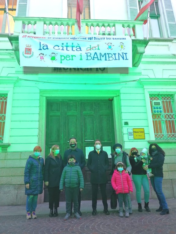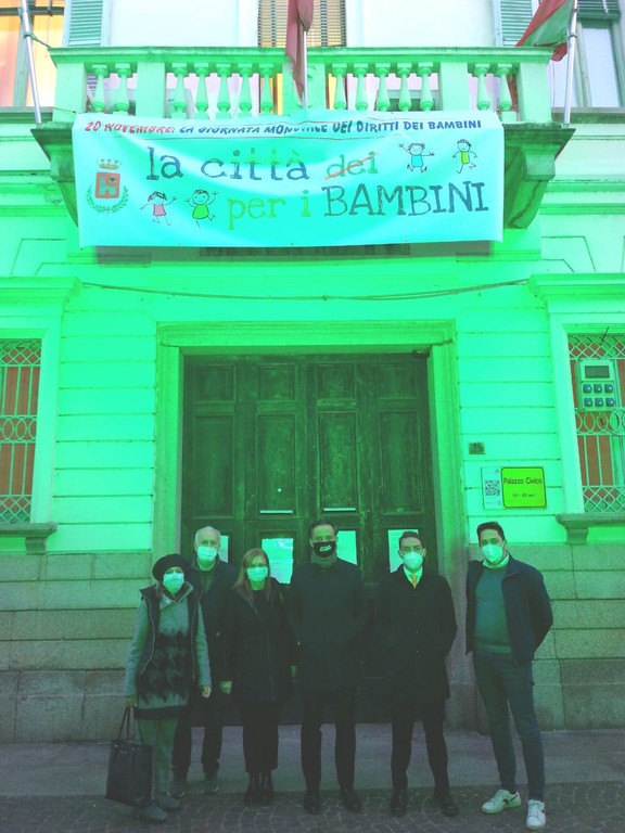 Pertanto dalle ore 16,30 alle ore 20 è stata illuminata una sede simbolica cittadina, la facciata del Municipio con l’ingresso al nido Pollicino, con il colore verde suggerito dai proponenti citati e scelto per il significato di vitalità, come la clorofilla che trasporta la vita nella natura. Presenti al momento dell’accensione il sindaco Andrea Ceffa, il vice sindaco, Antonello Galliani e la Dirigente, Laura Genzini. È stato esposto anche lo striscione simbolo dell’iniziativa “Città per i Bambini” che quest’anno è alla terza edizione.