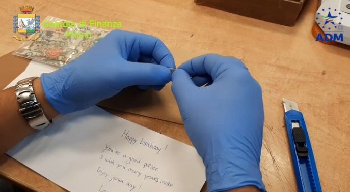 Biglietti di auguri, libri, scatole di cerotti "farciti" di droga e spediti via posta dall'Olanda. I funzionari della Dogana di Milano e i militari del Gruppo della Guardia di Finanza dell’Aeroporto di Linate hanno intercettato vari tipi di droga nascoste nella corrispondenza postale, proveniente principalmente dall’Olanda e destinata a persone fisiche residenti in ogni regione del nostro Paese.